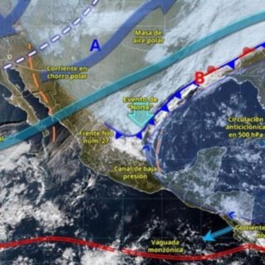 El frente frío avanzará rápidamente sobre Tamaulipas y Veracruz, impulsado por una masa de aire frío de origen polar. Para el miércoles se pronostican vientos del noroeste y norte de 25 a 35 km/h, aumentando por la tarde con rachas fuertes. El jueves, el viento alcanzará rachas mayores a 90 km/h en la costa sur y entre 55 y 65 km/h en regiones montañosas.